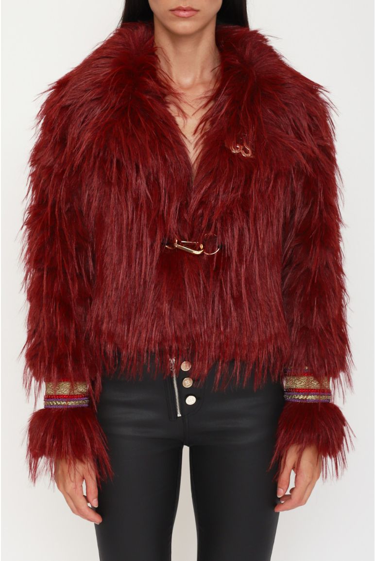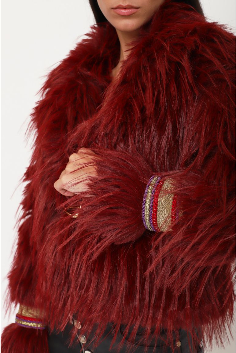 Giacca cropped in eco-pelliccia effetto sfrangiato con chiusura frontale