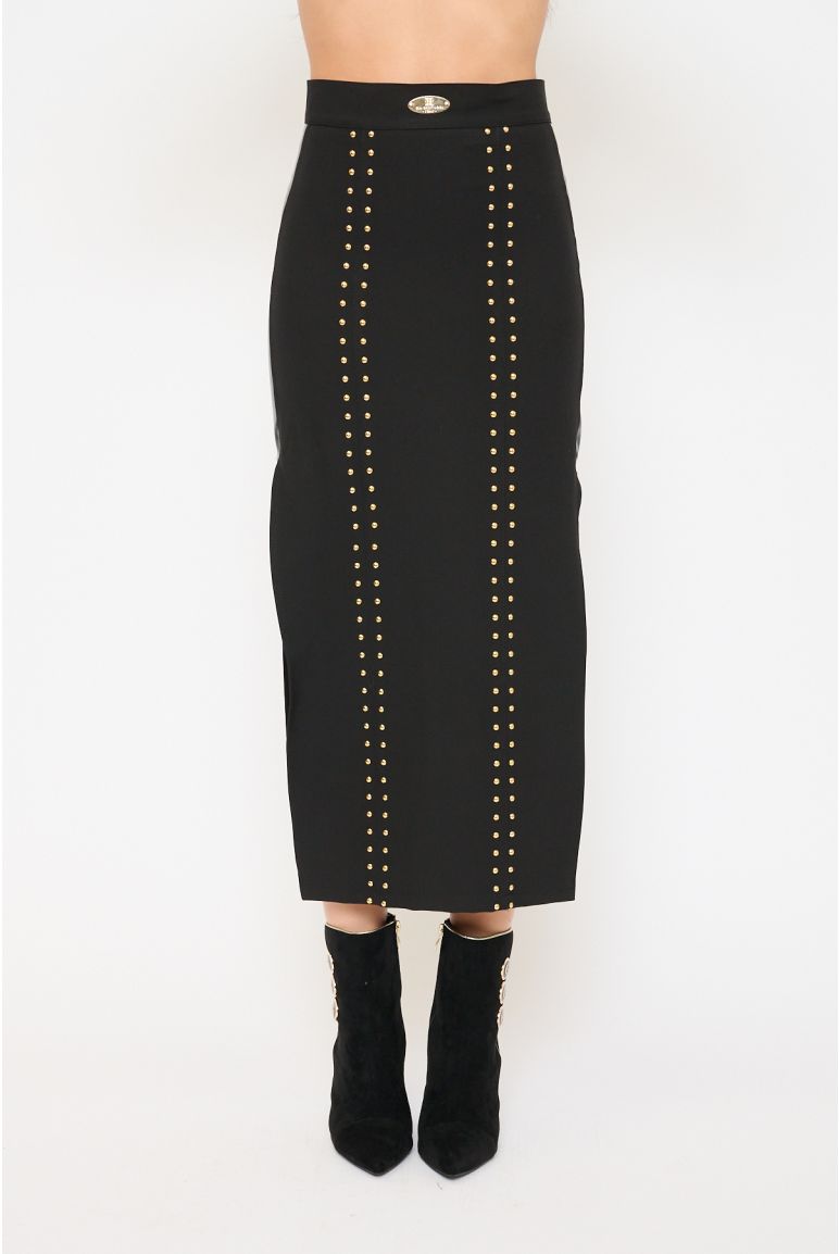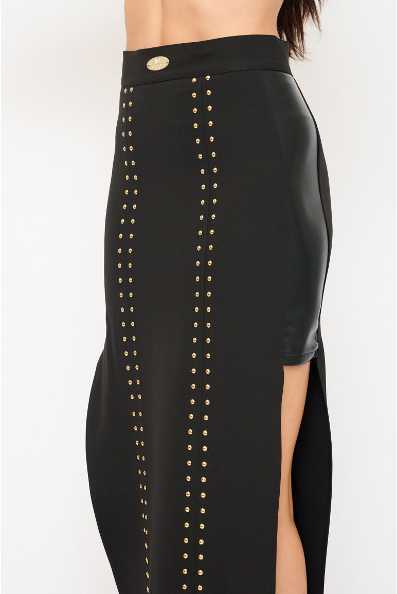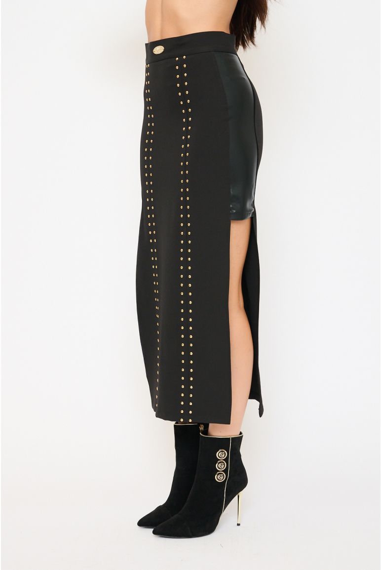 Gonna con spacchi laterali, borchie e inserti in ecopelle