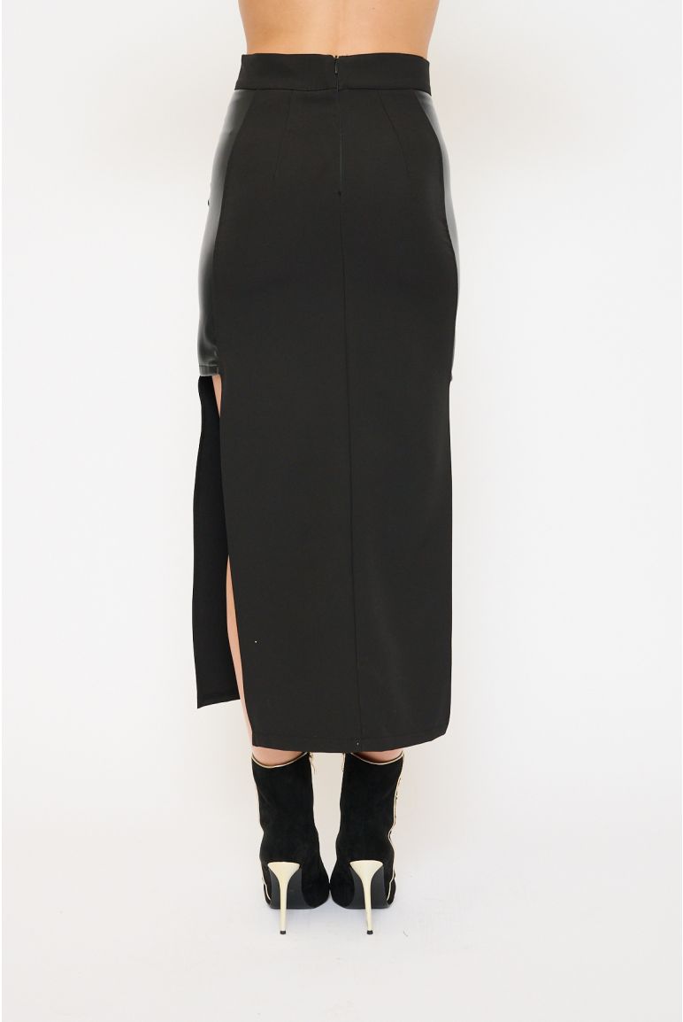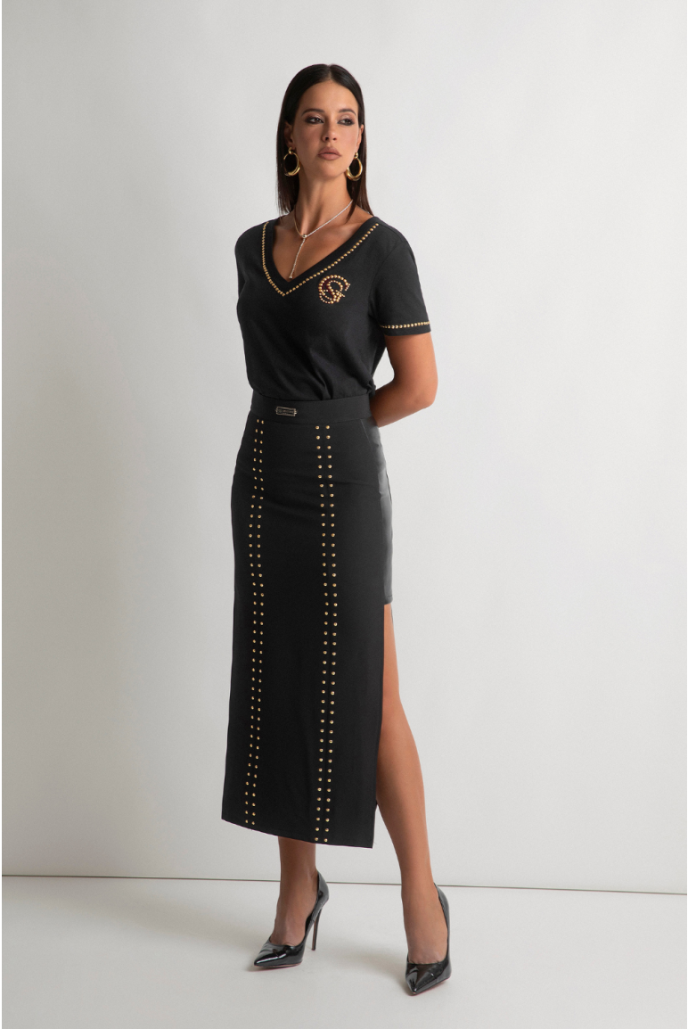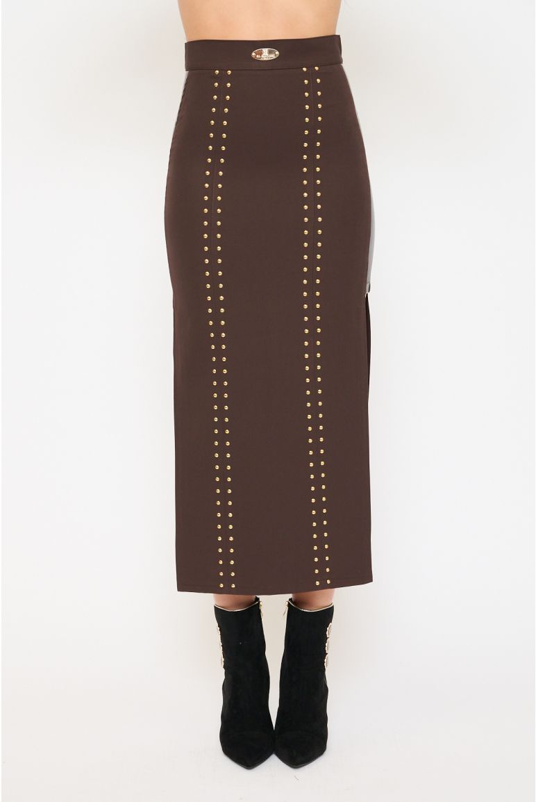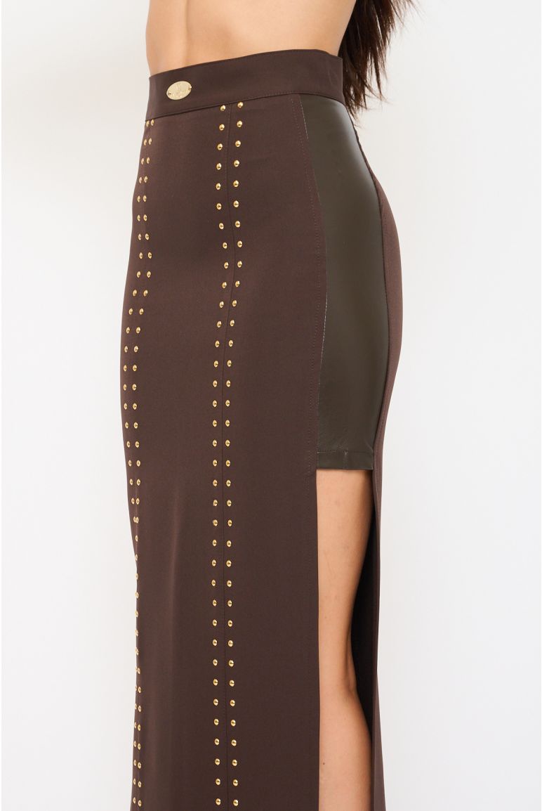 Gonna con spacchi laterali, borchie e inserti in ecopelle