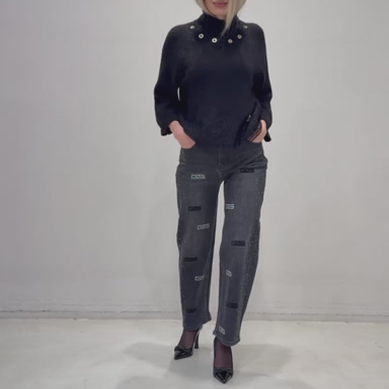 Jeans a gamba dritta con dettagli stass